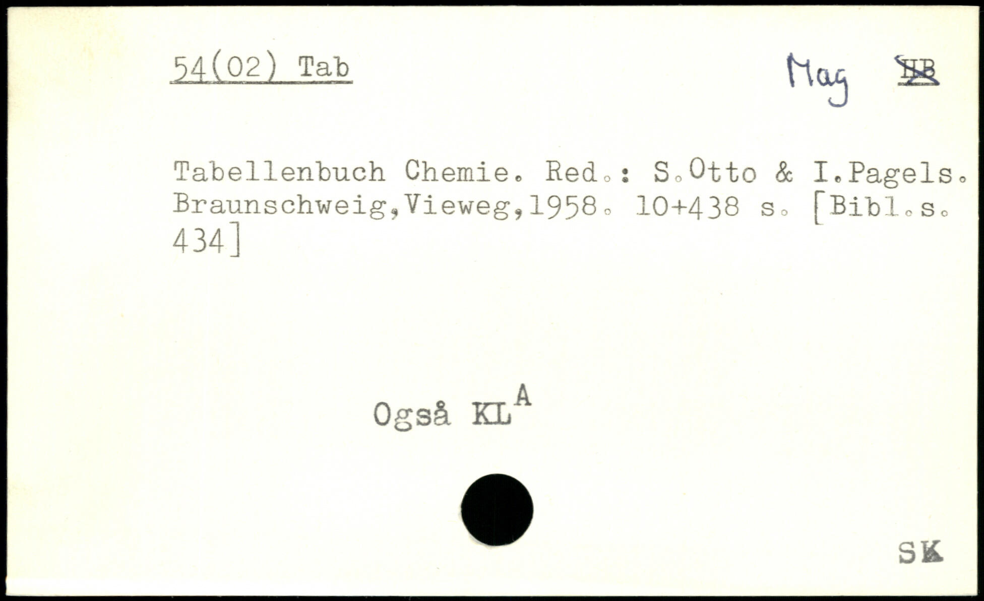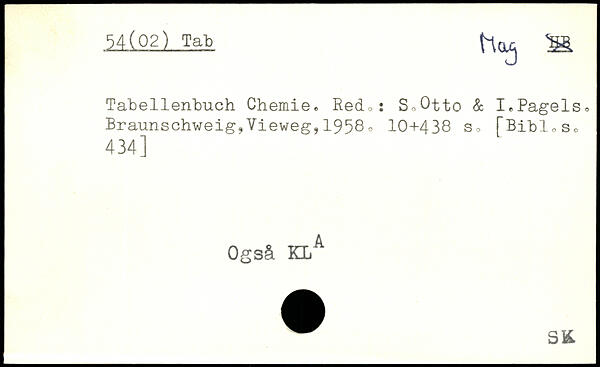 Tabellenbuch Chemie. Rede : SoOtto & I.Pagels.