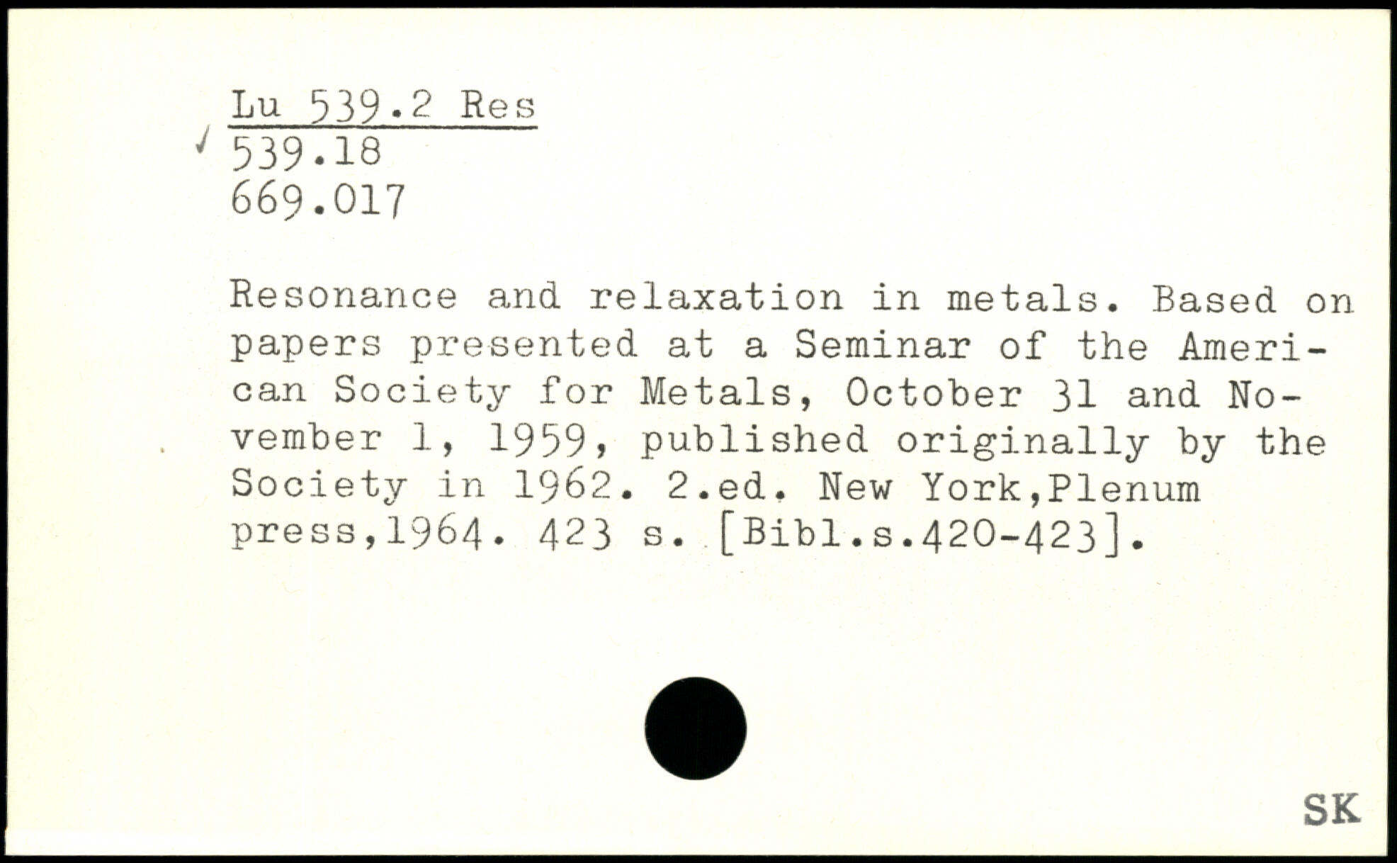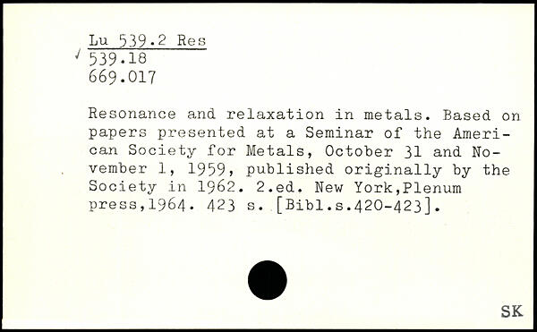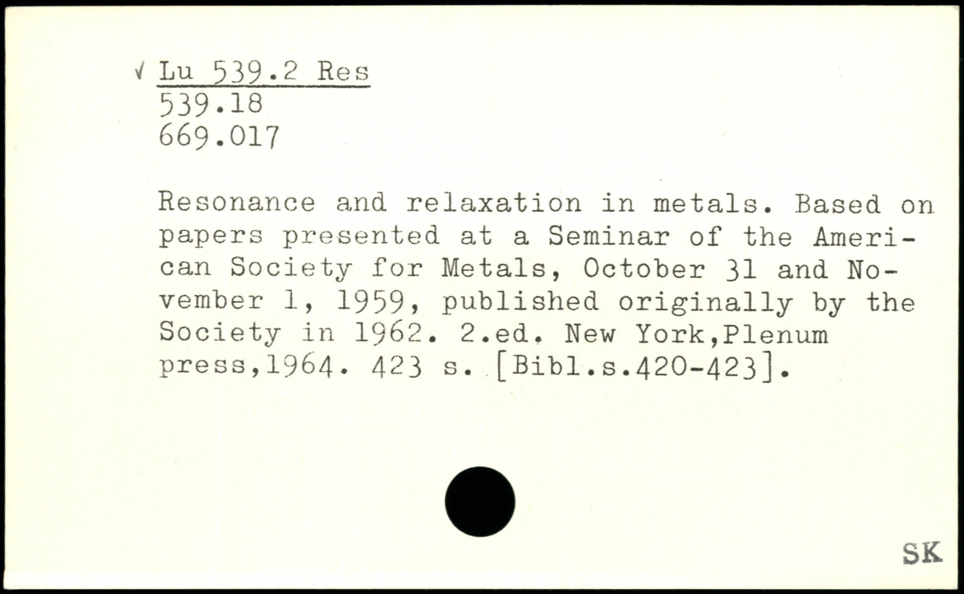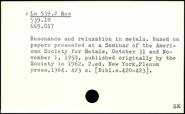 Resonance and relaxation in metals. Based on papers presented at a Seminar of the American Society for Metals, October 31 and November 1, 1959} published originally by the Society in 1962.