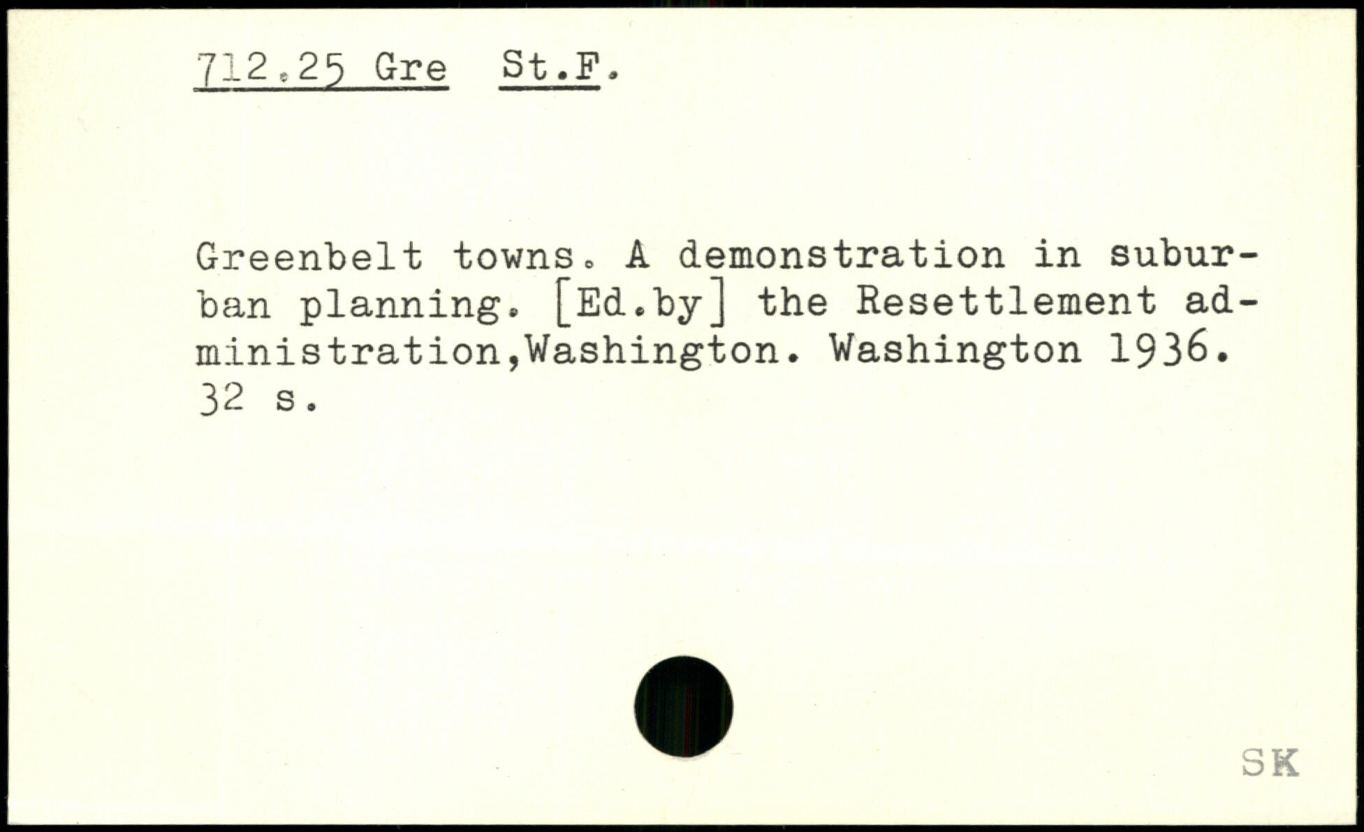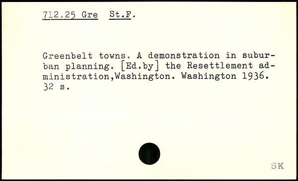 Greenbelt towns, A demonstration in suburban planning. [Ed.by] the Resettlement administration,Washington.