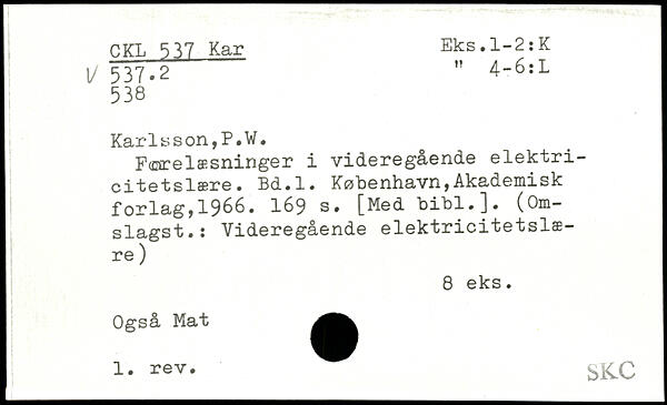 F(nrelæsninger i videregående elektri-citetslære. Bd.l.