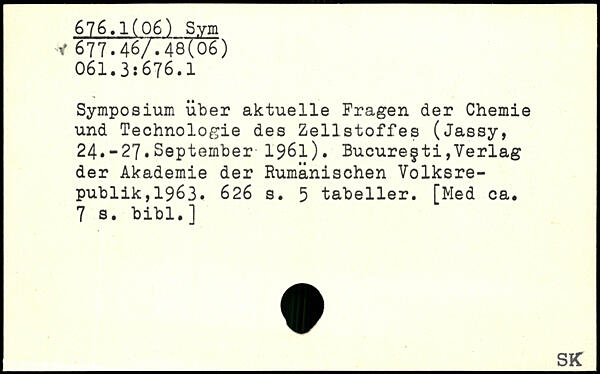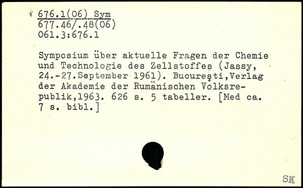 Symposium über aktuelle Fragen der Chemie und Technologie des Zellstoffes (Jassy, 24.-27.September 1961). Bucure§ti,Verlag der Akademie der Rumänischen Volksrepublik, 1963.