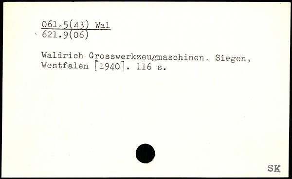Valdrich Grosswerkzeugmaschinen. Siegen, Westfalen [1940I.