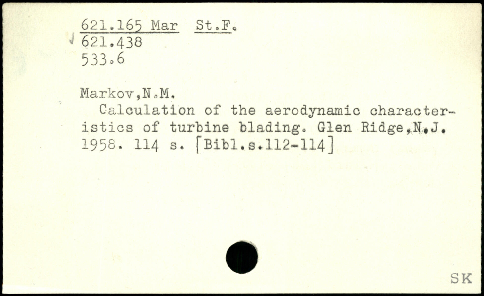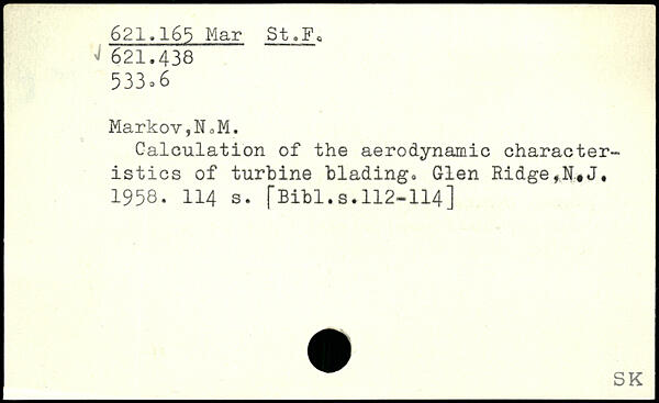 Calculation of the aerodynamic characteristics of turbine blading. Glen Ridge ,N..J. 1958.