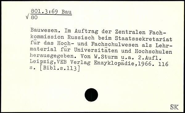 Bauwesen. Im Auftrag der Zentralen Fachkommission Russisch beim Staatssekretariat für das Hoch- und Fachschulwesen als Lehrmaterial fur Universitäten und Hochschulen herausgegeben. Von W.Sturm u.a.