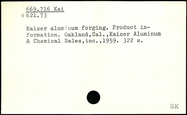 Kaiser aluminum forging. Product information. Oakland,CalKaiser Aluminum & Chemical Sales,inc.,1959.