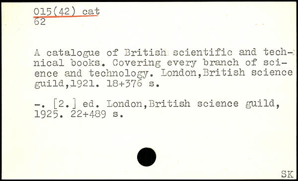 A catalogue of British scientific and technical boohs. Covering every branch of science and technology.