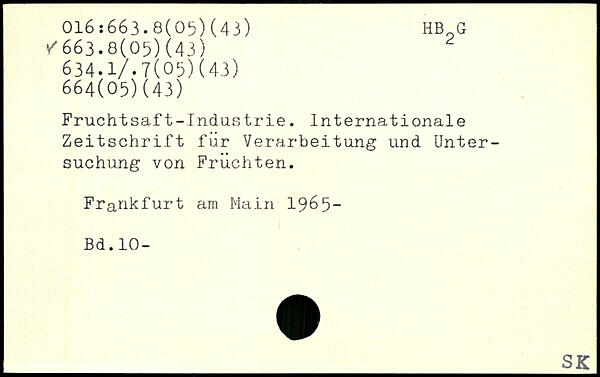 Fruchtsaft-Industrie. Internationale Zeitschrift für Verarbeitung und Untersuchung von Früchten.