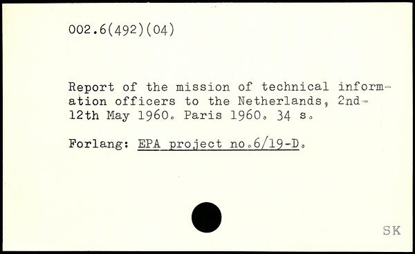 Report of the mission of technical information officers to the Netherlands, 2nd-12th May 1960