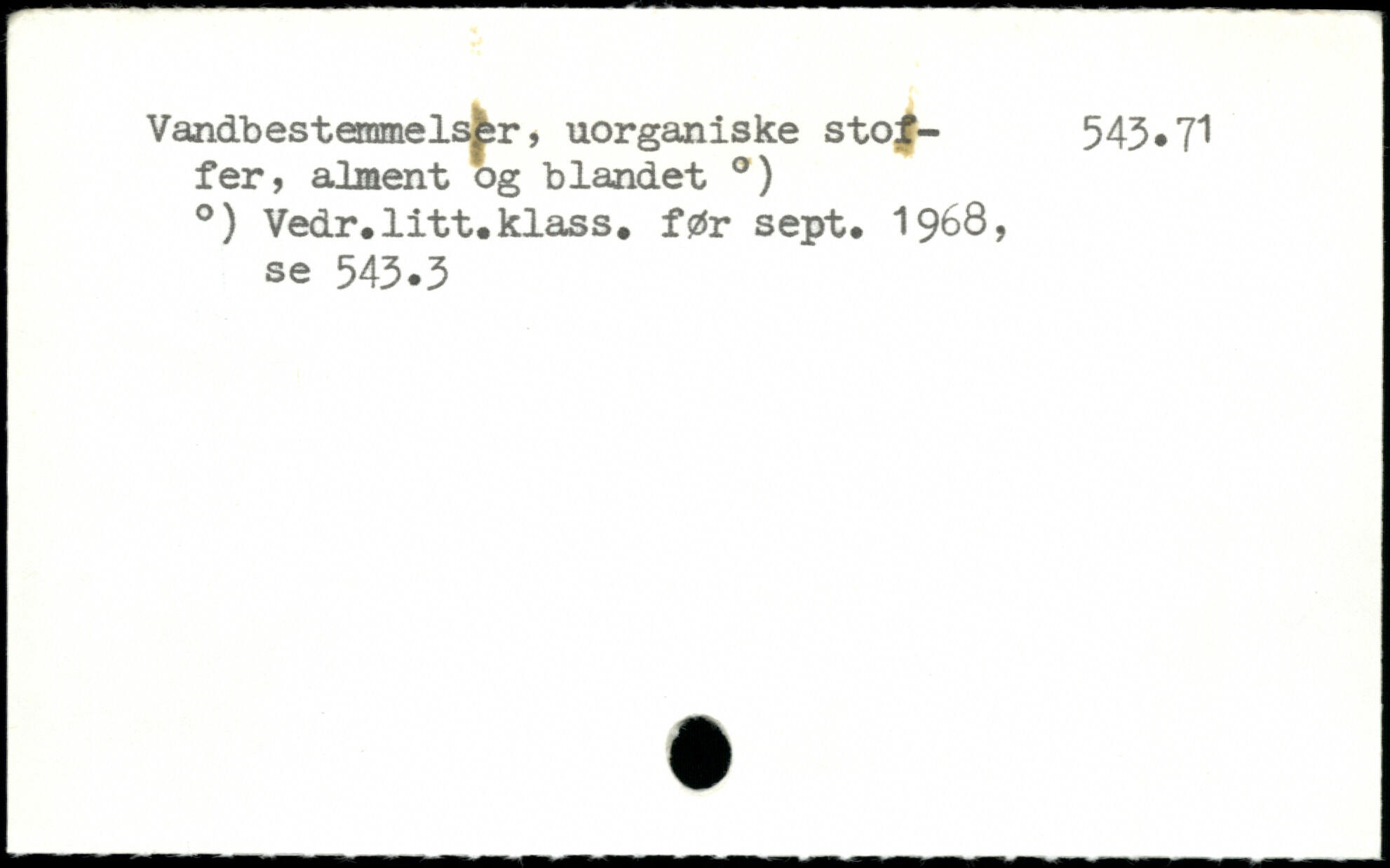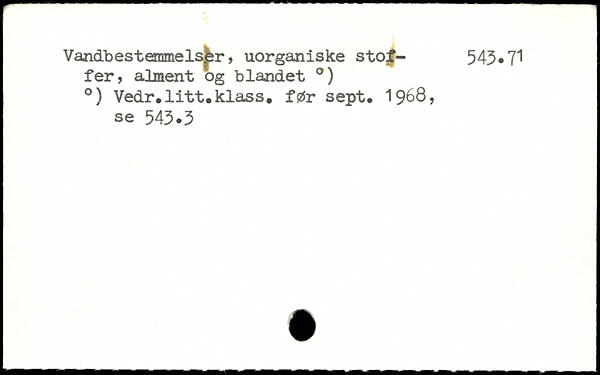 Vandbestemmels^r, uorganiske sto|- 543.71 fer, alment og blandet .) .) Vedr.litt.klass. før sept. 1968, se 543.3