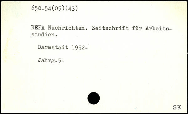 REFA Nachrichten. Zeitschrift für Arbeitsstudien. Darmstadt 1952- Jahrg.5-