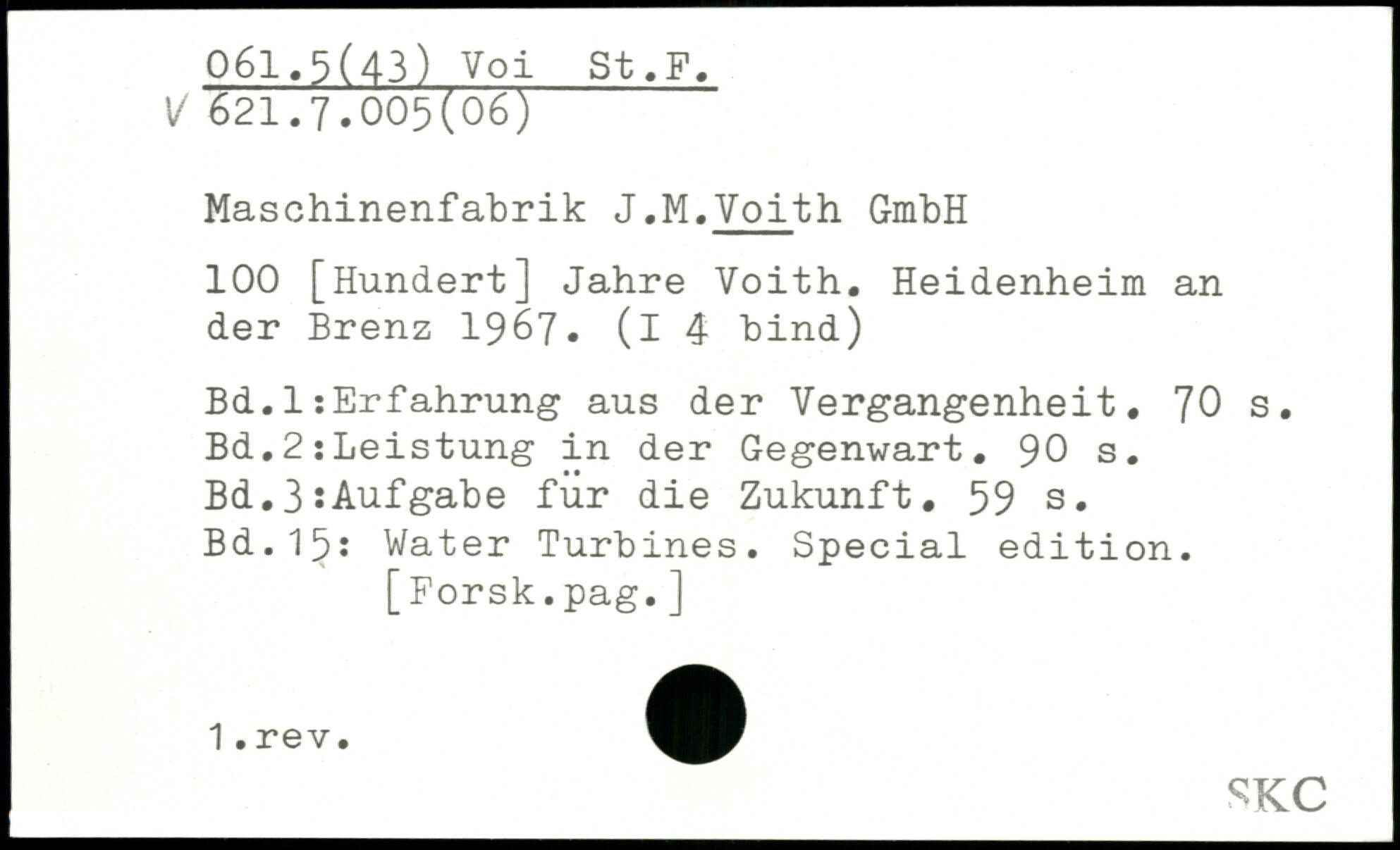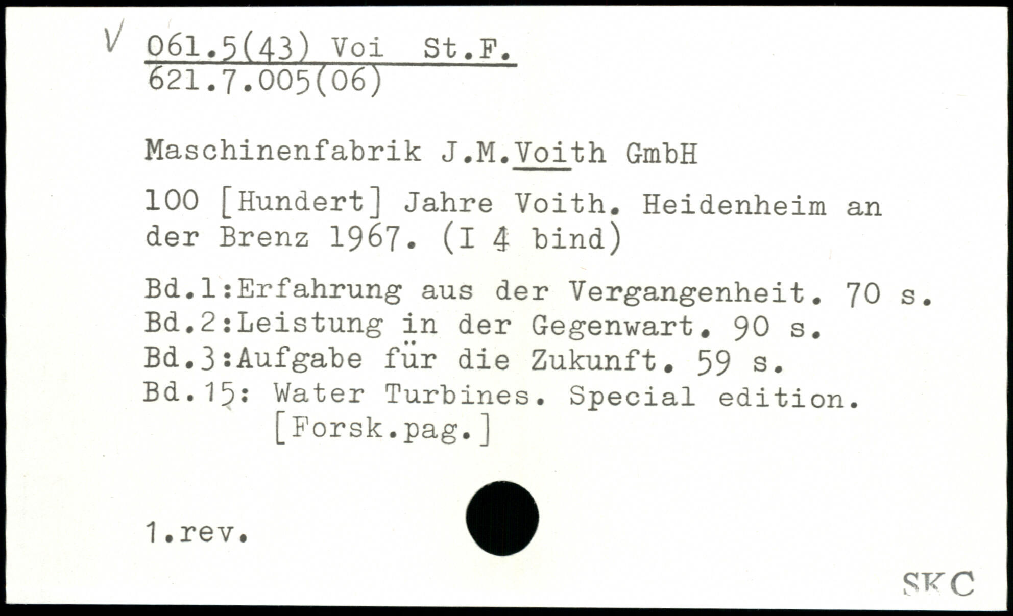 Maschinenfabrik J.M.Voith GmbH 100 [Hundert] Jahre Voith. Heidenheim an der Brenz 1967. (i 4 bind)