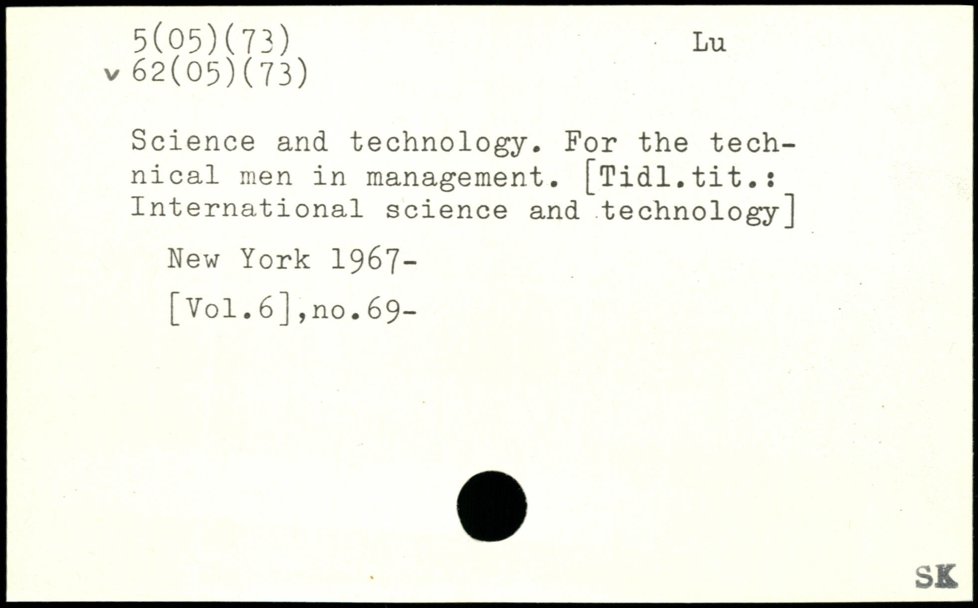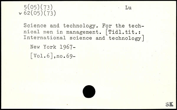 Science and technology. For the technical men in management. [Tidl.tit.i International science and technology]