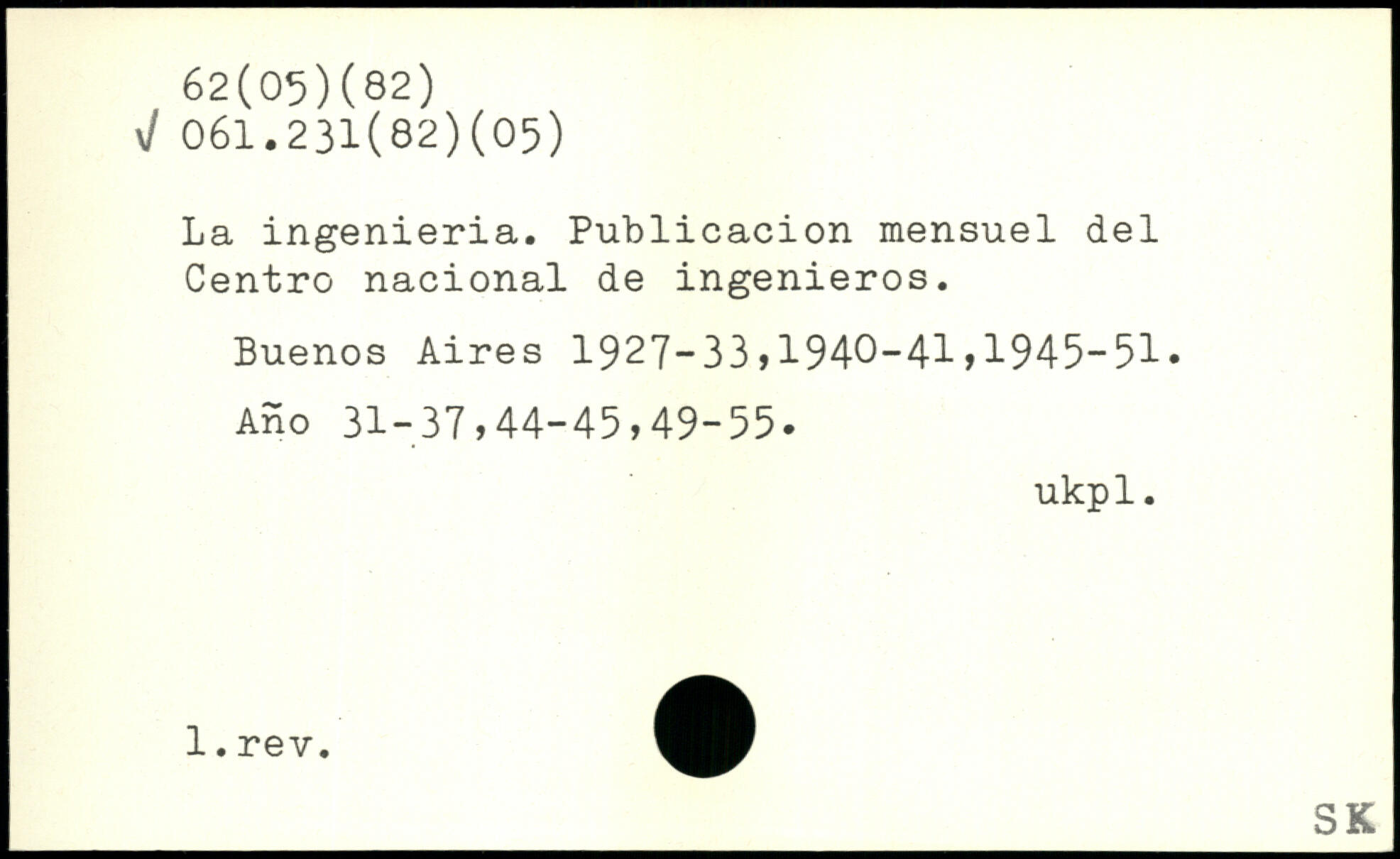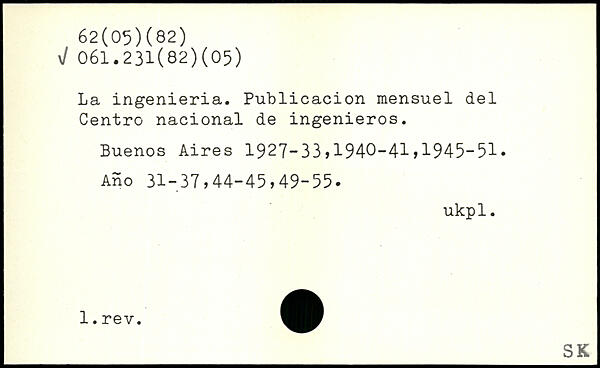 La ingenieria. Publicacion mensuel del Centre nacional de ingenieros. Buenos Aires 1927-33,1940-41,1945-51. Ano 31-37,44-45,49-55. ukpl.