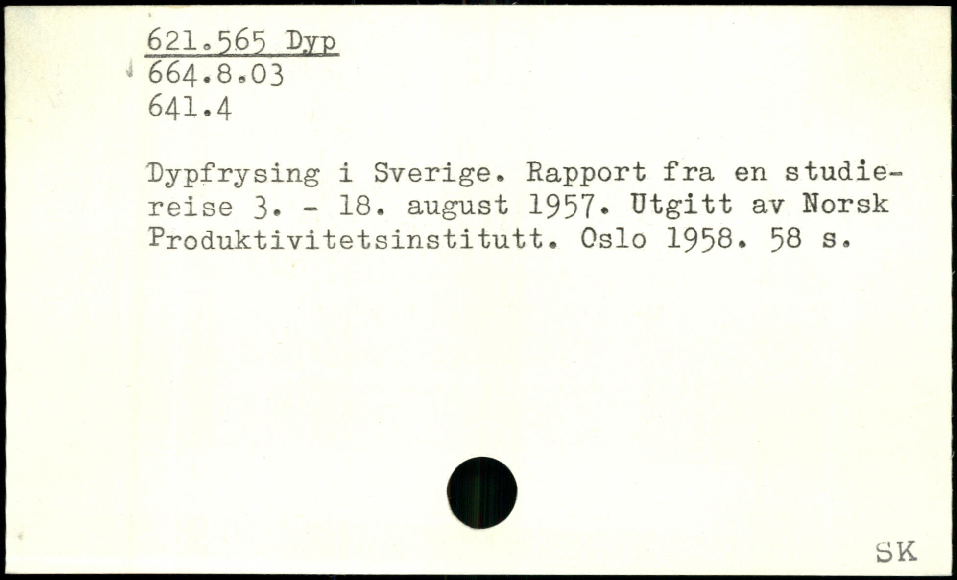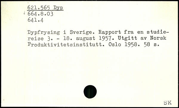 Dypfrysing i Sverige. Rapport fra en studiereise 3. - 18. august 1957. Utgitt av Rorsk Produktivitetsinstitutt. Oslo 1958.