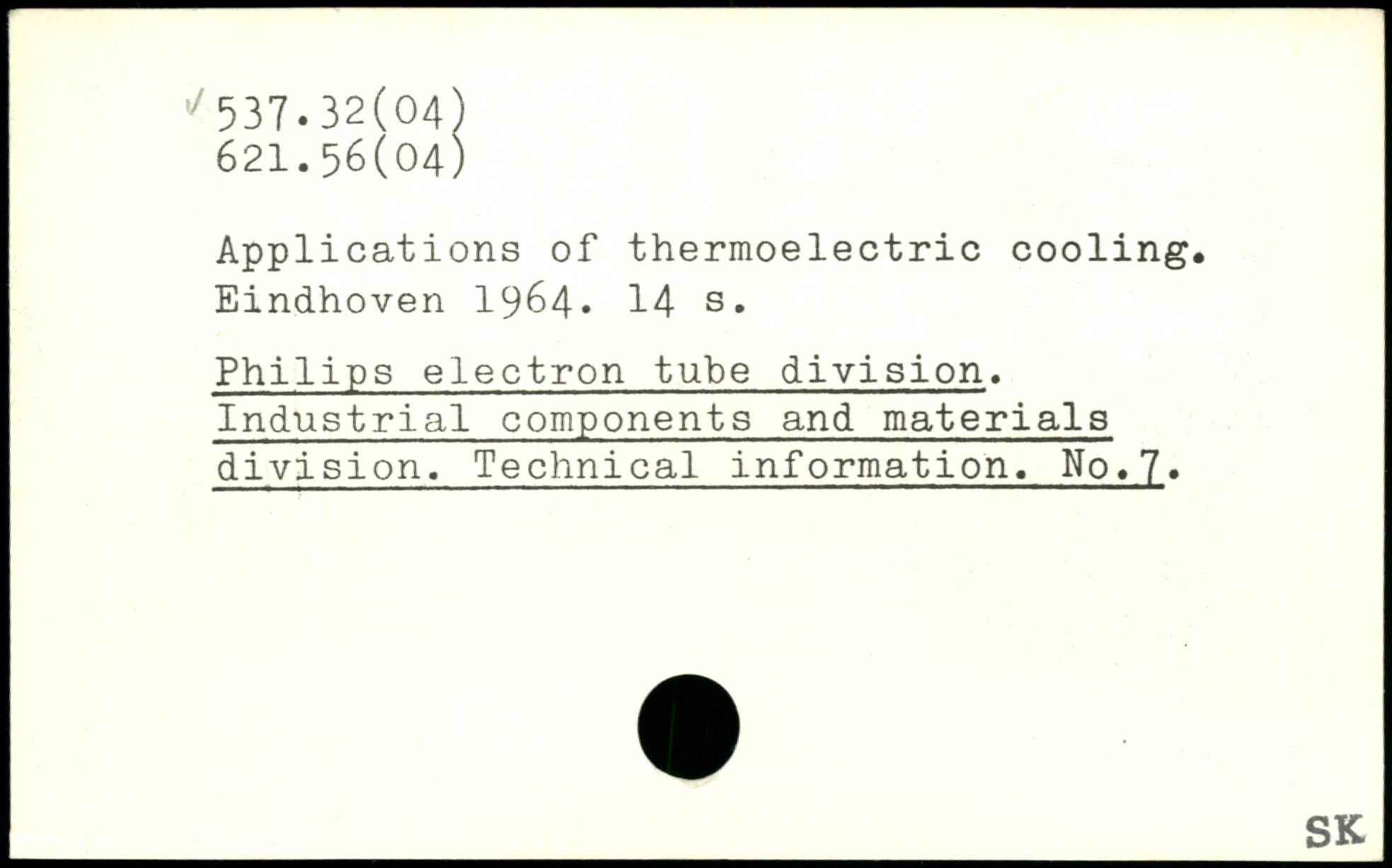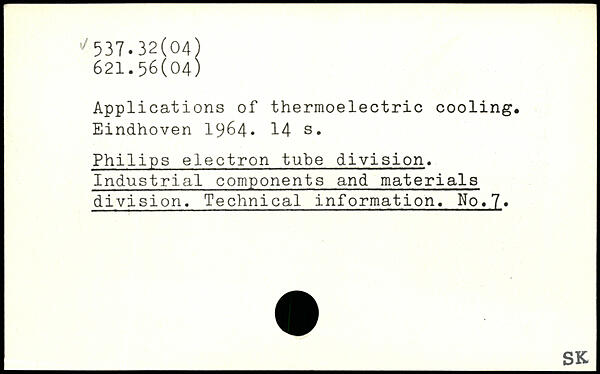 Applications of thermoelectric cooling, Eindhoven 1964.