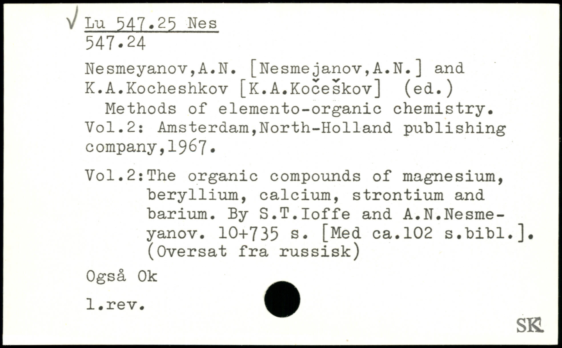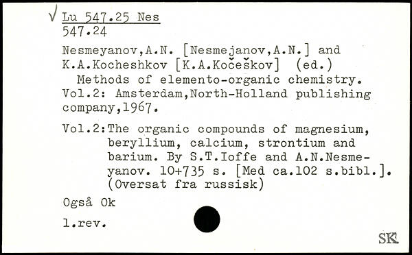 Nesmeyanov,A.N. [Nesmejanov,A.N.] and K.A.Kocheshkov [K.A.Koceskov] (ed.) Methods of elemento-organic chemistry.