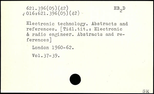 Electronic technology. Abstracts and references. [Tidl.tit.: Electronic & radio engineer. Abstracts and references]
