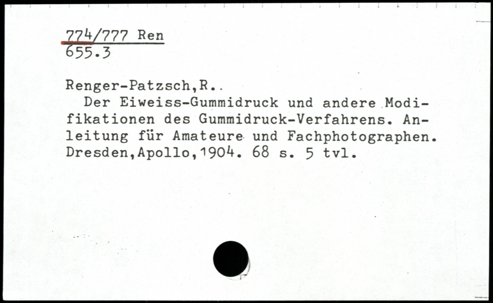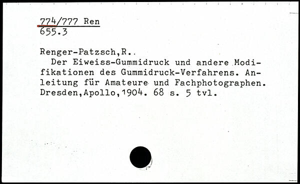 Renger-Patzsch,R.. Der Eiweiss-Gummidruck und andere Modifikationen des Gummidruck-Verfahrens. Anleitung für Amateure und Fachphotographen. Dresden,Apollo,190^.