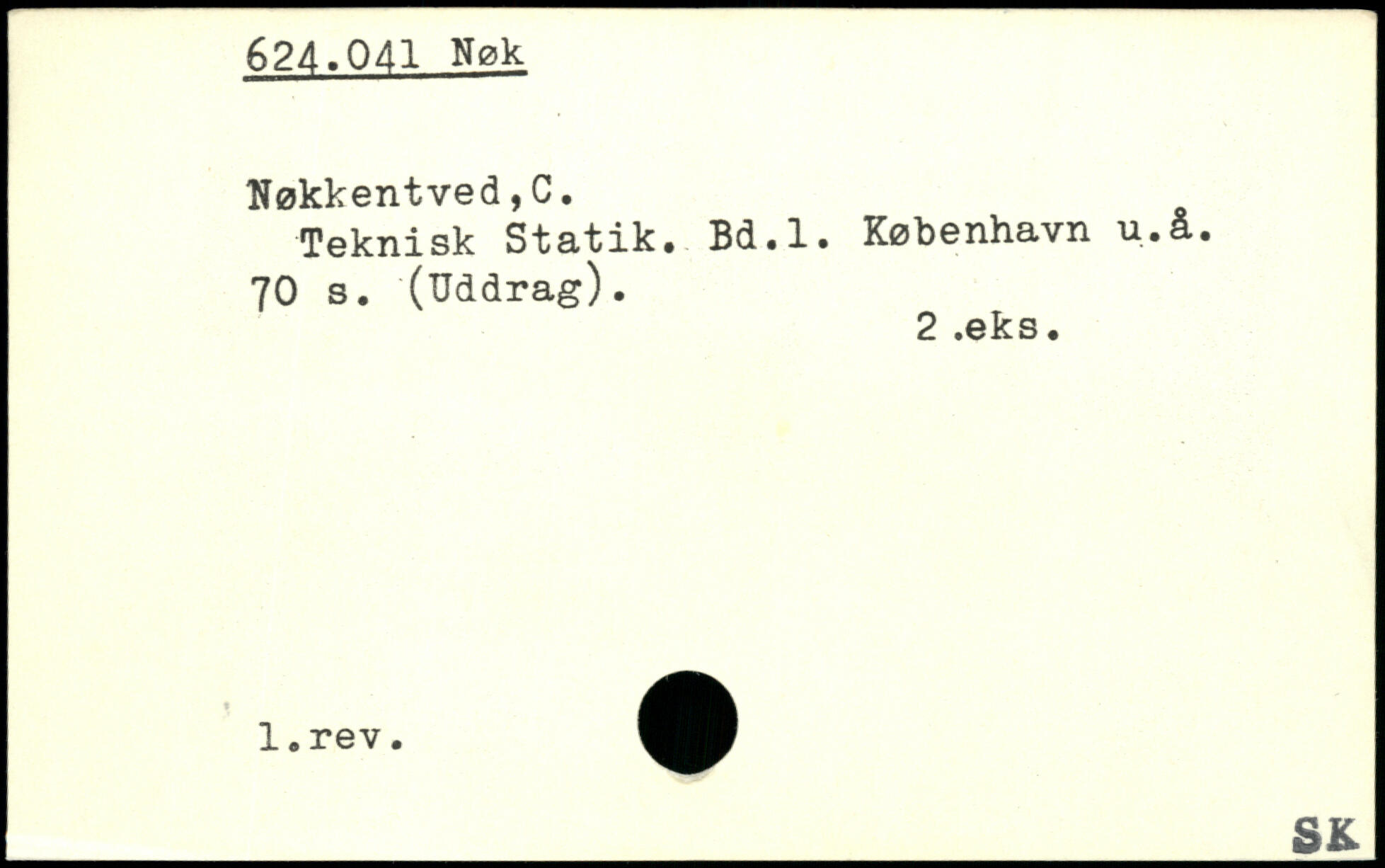 Teknisk Statik. Bd.l. København u.å.