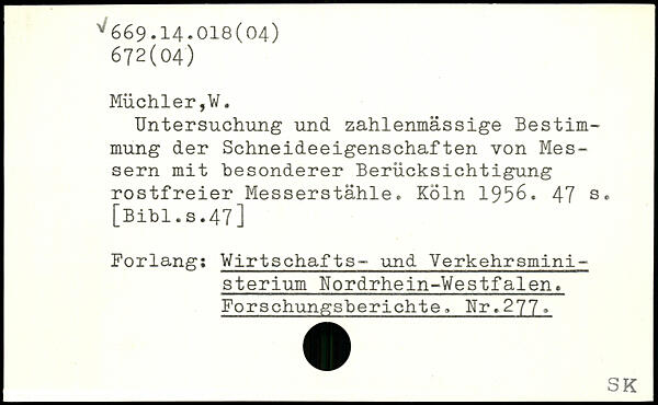 Untersuchung und zahlenmässige Bestimmung der Schneideeigenschaften von Messern mit besonderer Berücksichtigung rostfreier Messerstähle.