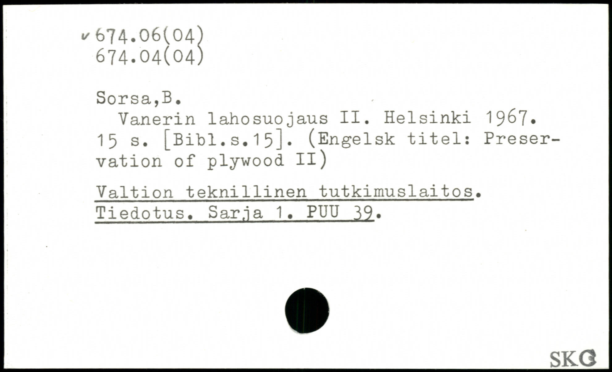 Vanerin lahosuojaus II. Helsinki 19^7