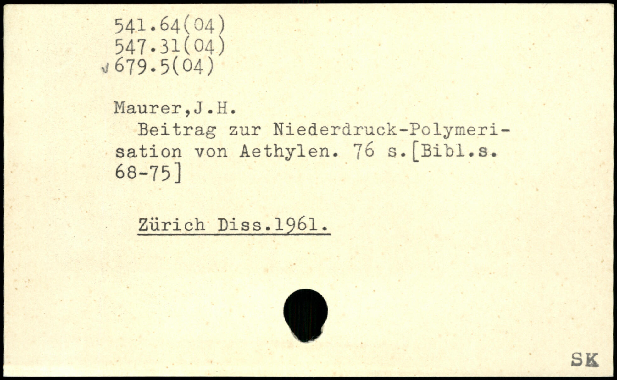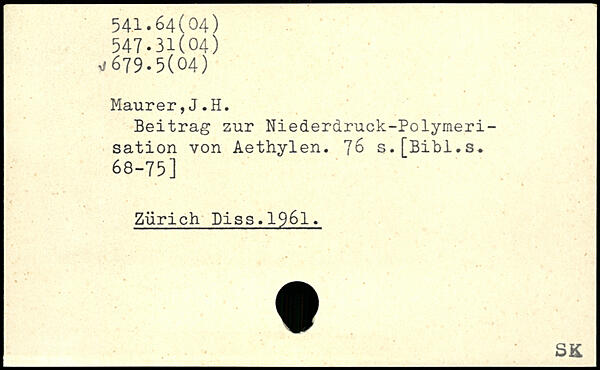 Beitrag zur Niederdruck-Polymerisation von Aethylen. 'Jo s.