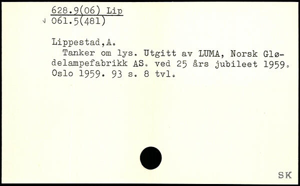 Tanker om lys. TJtgitt av LUMA, Norsk Glødelampef abrikk ASc ved 25 års jubileet 19590 Oslo 1959-