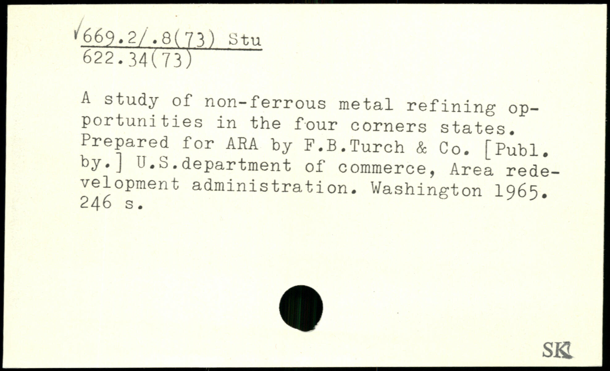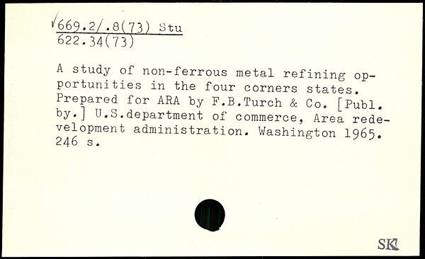 A study of non-ferrous metal refining op-portunities in the four corners states. Prepared for ARA by F.B.Turch & Co.