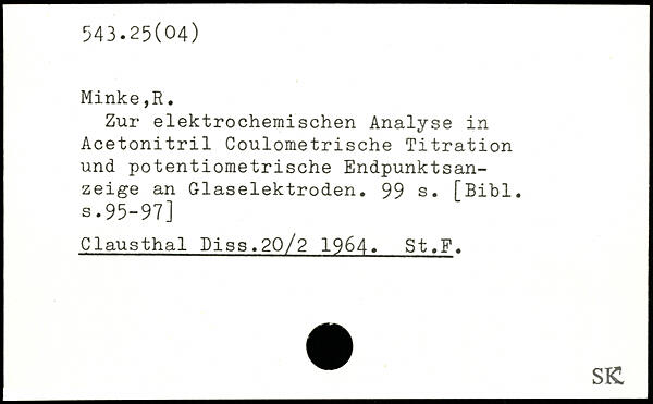 Zur elektrochemischen Analyse in Acetonitril Coulometrische Titration und potentiometrische Endpunktsanzeige an Glaselektroden.