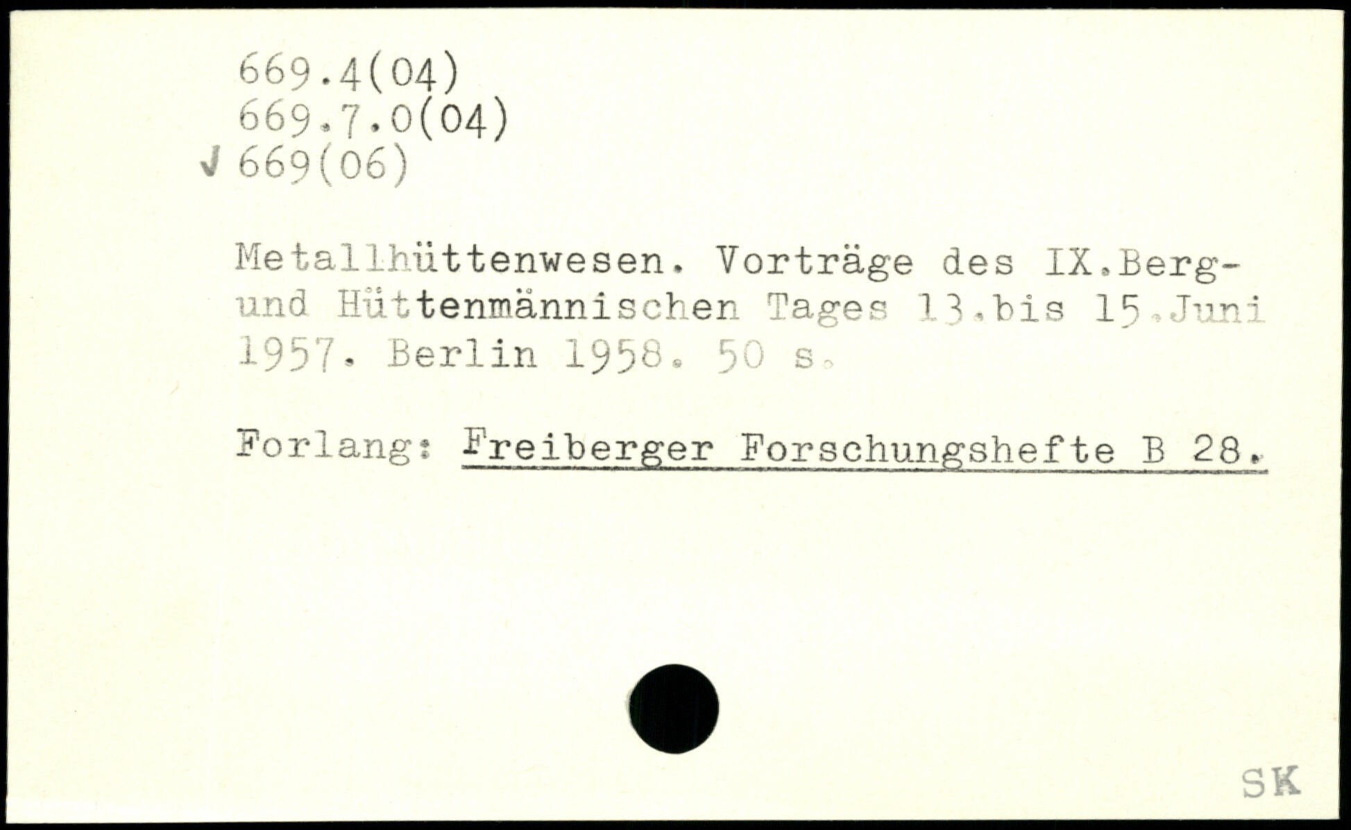Metallhüttenwesen. Vorträge des IX.Berg-und Hüttenmännischen Tages 11,bis 15,Juni 1957