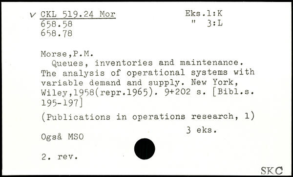 Queues, inventories and maintenance. The analysis of operational systems with variable demand and supply.