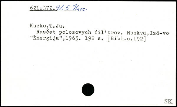 Kucko,T.Ju. Rascet polosovych fil'trov. Moskva,Izd-vo "Ênergija",1965.