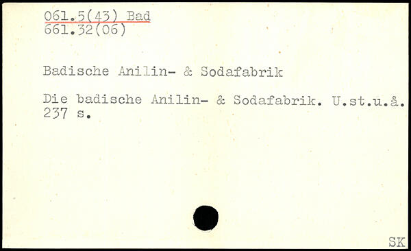 Badische Anilin- & Sodafabrik Die badische Anilin- & Sodafabrik. U.st.u.å.