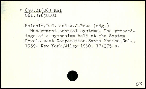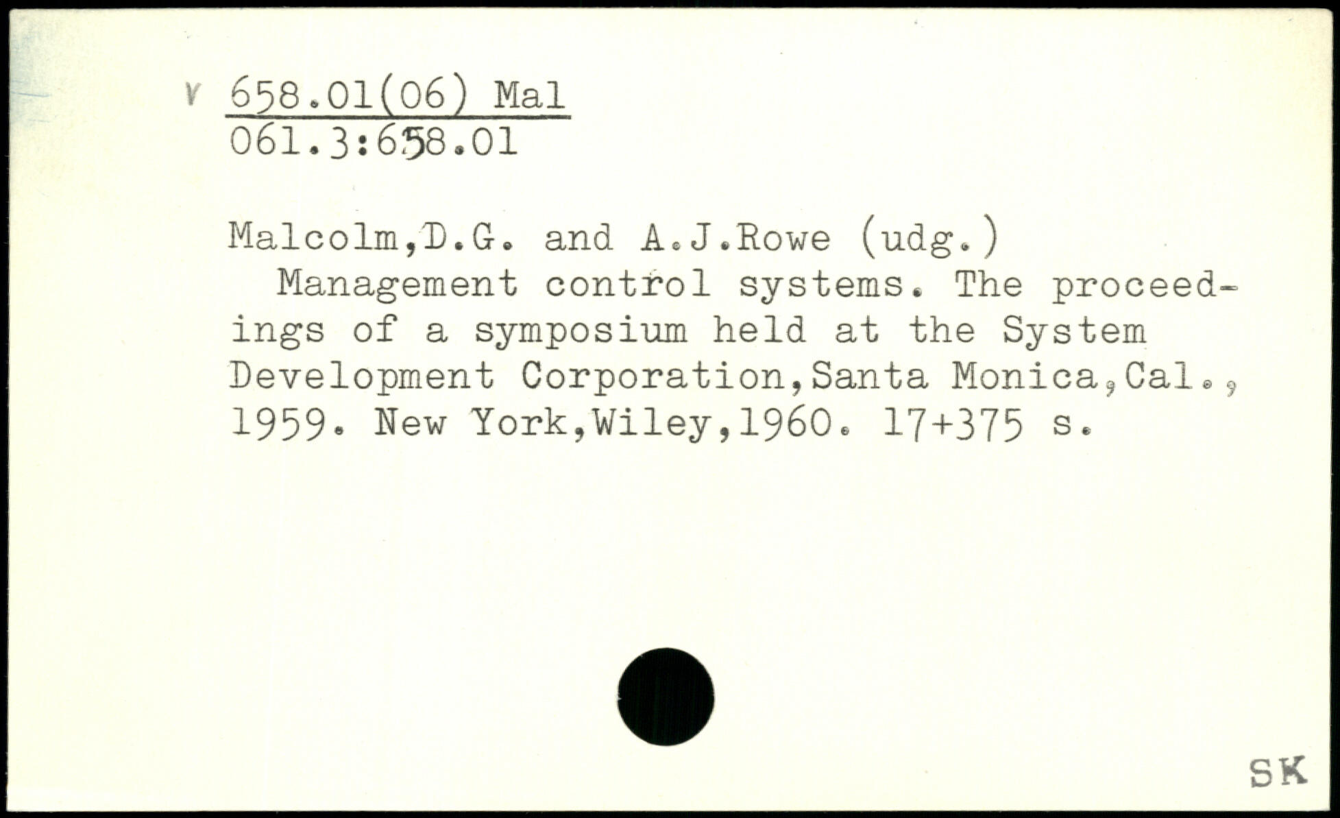 Management control systems. The proceedings of a symposium held at the System Development Corporation,Santa Monica,Cal,9 1959