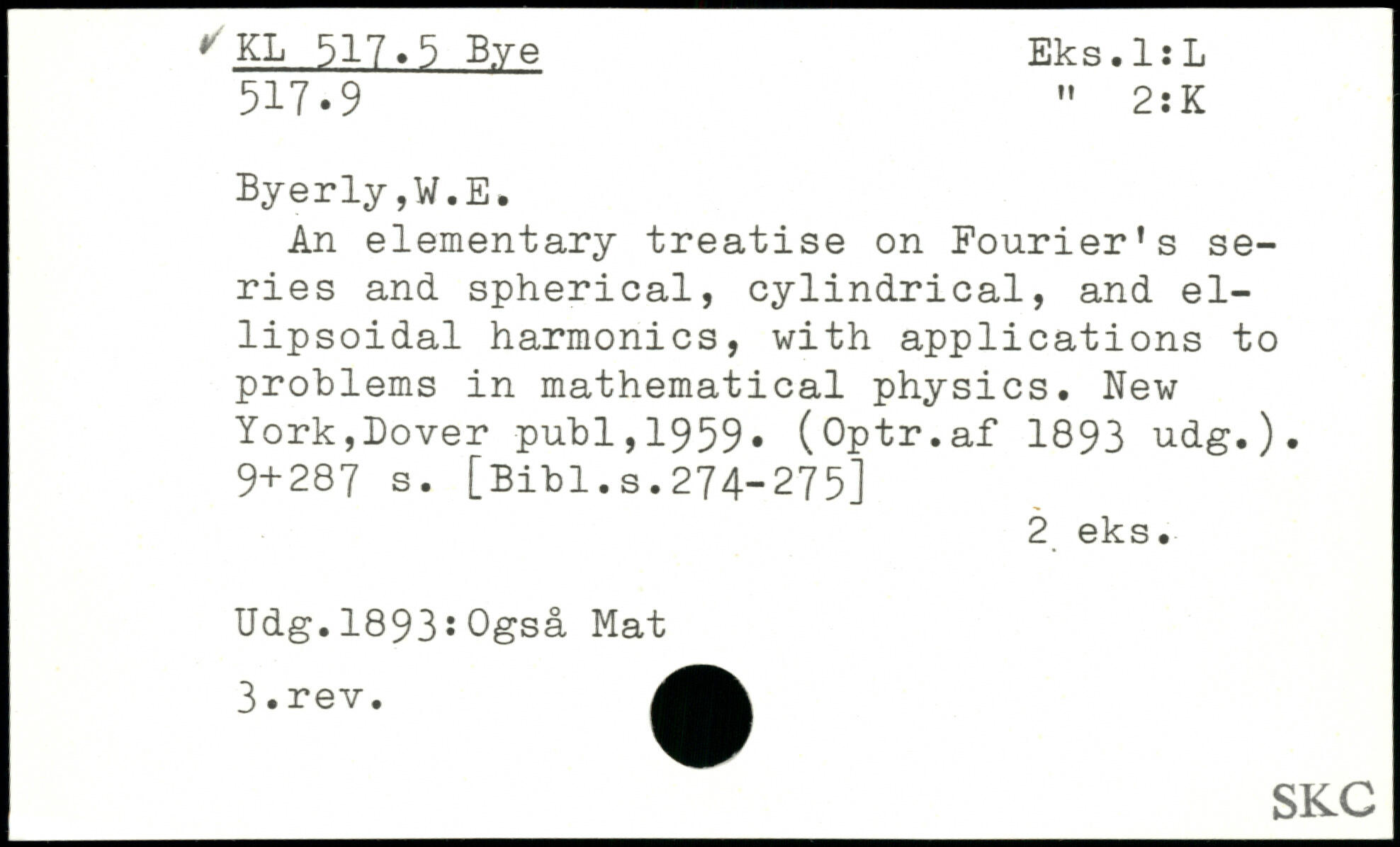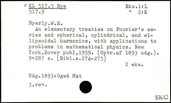 An elementary treatise on Fourier’s series and spherical, cylindrical, and ellipsoidal harmonics, with applications to problems in mathematical physics.
