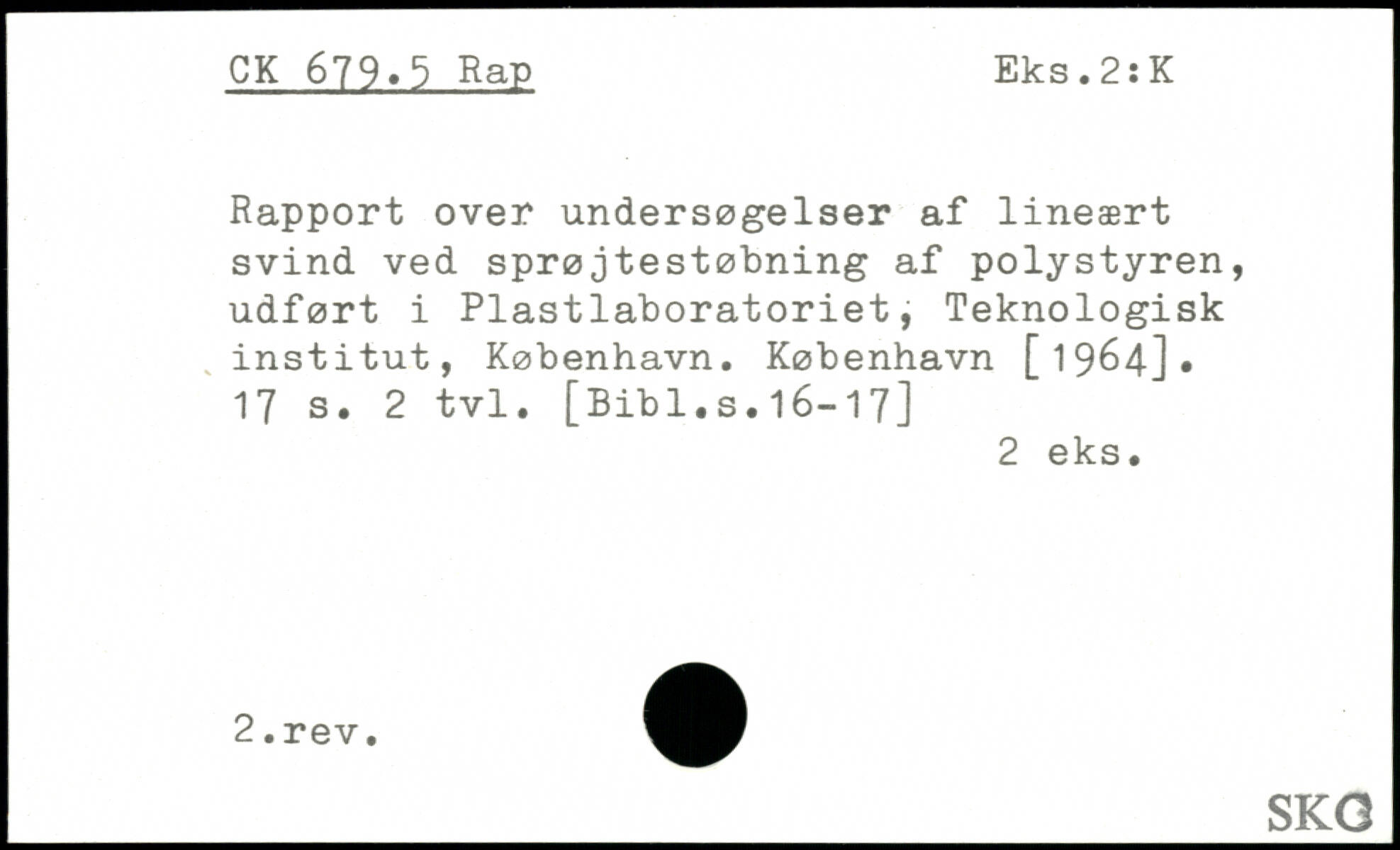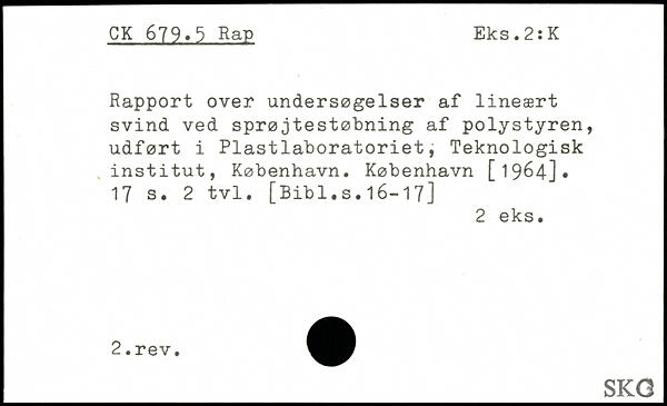Rapport over undersøgelser af lineært svind ved sprøjtestøbning af polystyren, udført i Plastlaboratoriet, Teknologisk , institut, København.