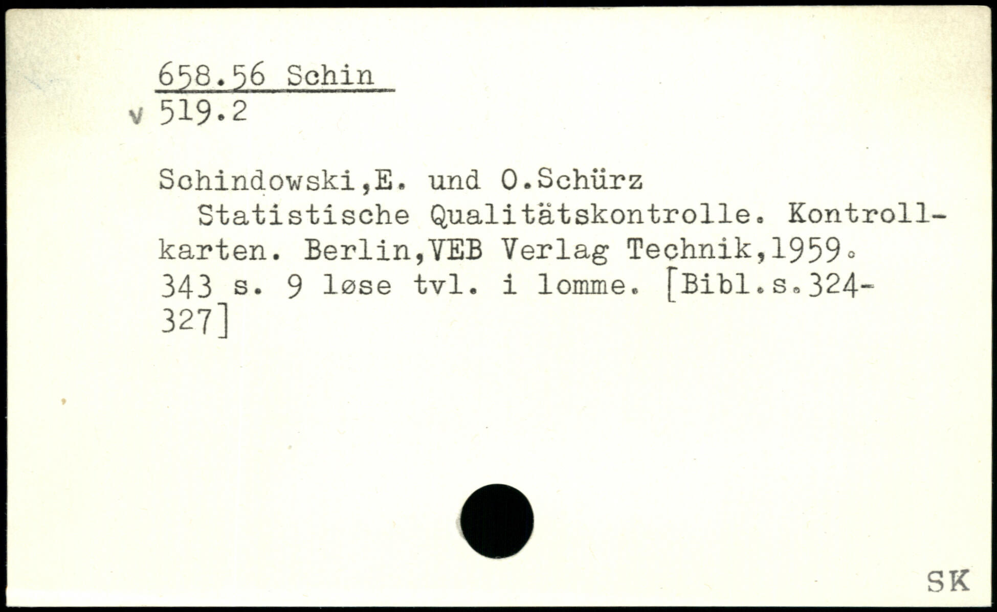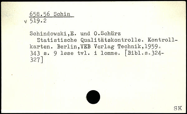 Sohindowski,E. und 0.Schürz Statistische Qualitätskontrolle. Kontrollkarten.