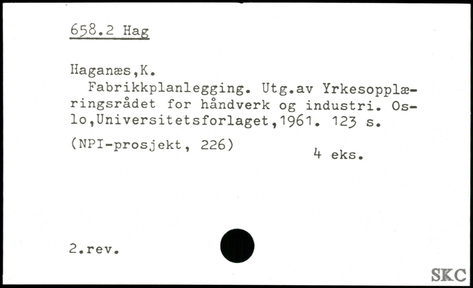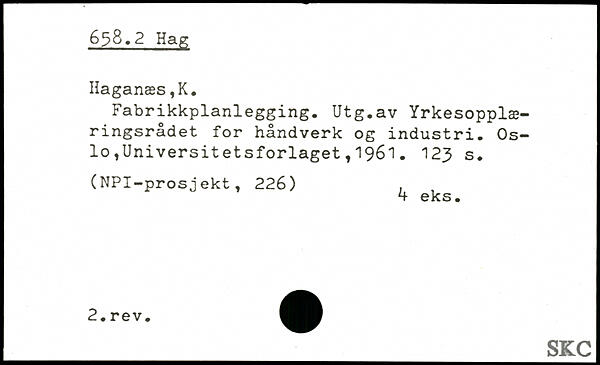 Fabrikkplanlegging. Utg.av Yrkesopplæ-ringsrådet for håndverk og industri.