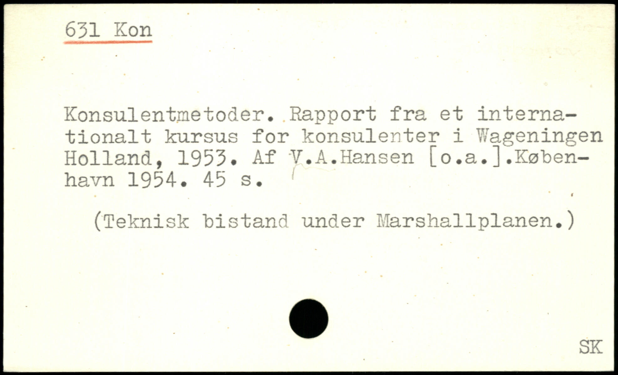Konsulentmetoder. Rapport fra et internationalt kursus for konsulenter i Wageningen Holland, 1953. Af V.A.Hansen [o.a.].