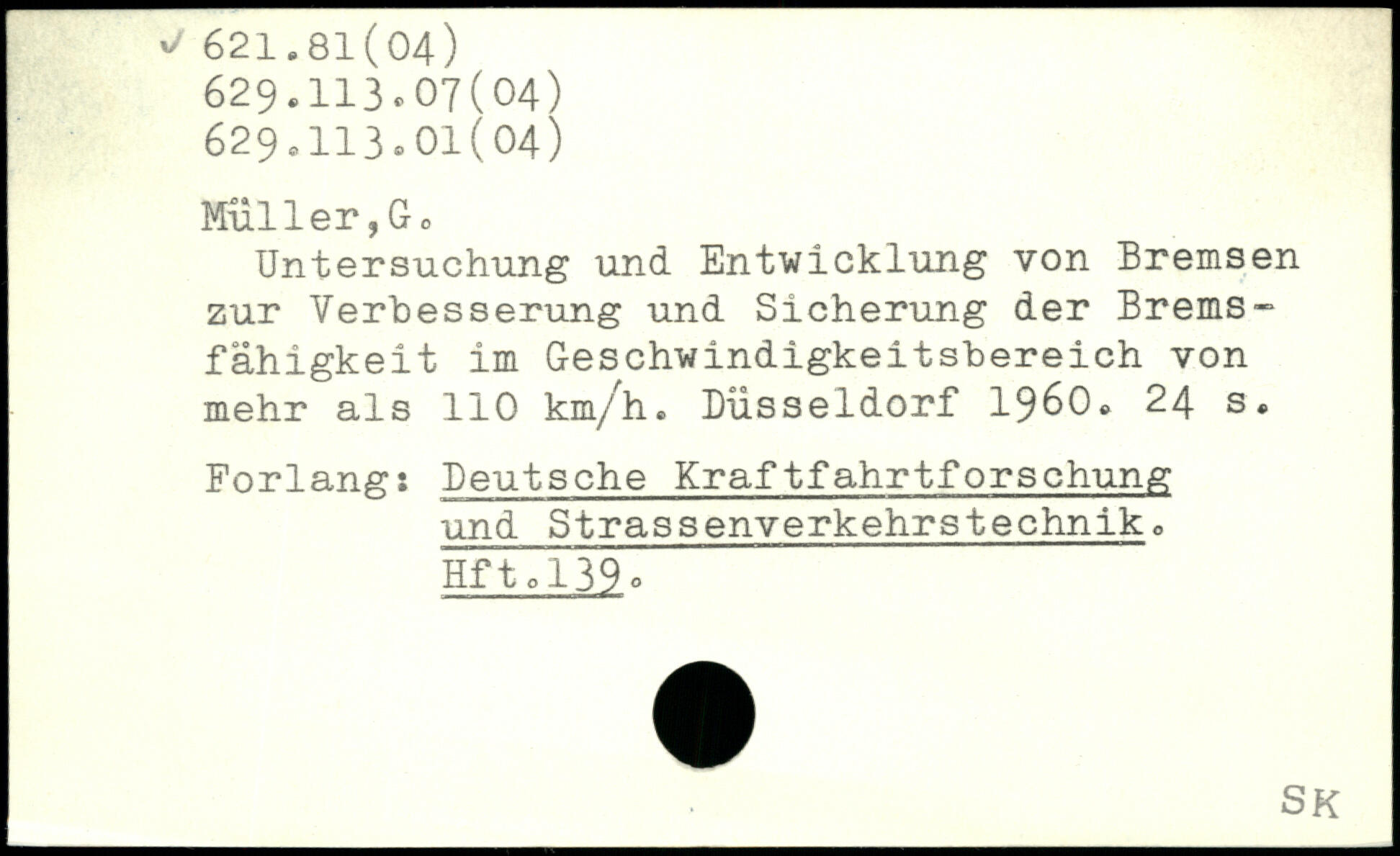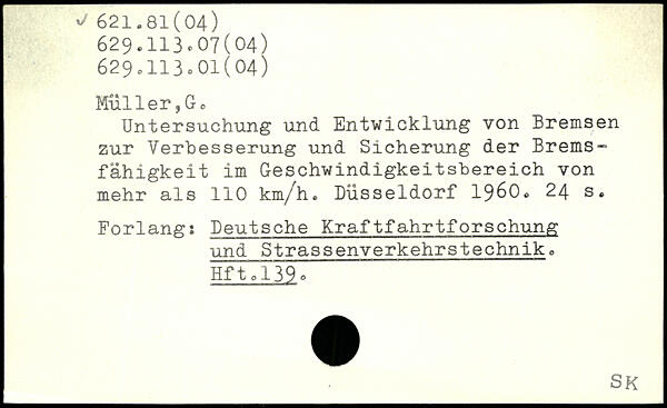 Untersuchung und Entwicklung von Bremsen zur Verbesserung und Sicherung der Brems-fähigkeit im Geschwindigkeitsbereich von mehr als 110 km/h. Düsseldorf 1960.