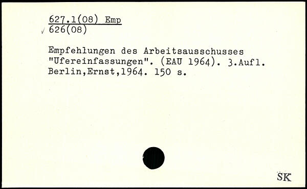 Empfehlungen des Arbeitsausschusses "Ufereinfassungen". (EAU 1964).