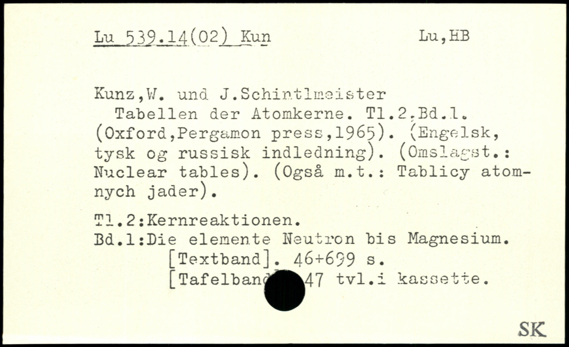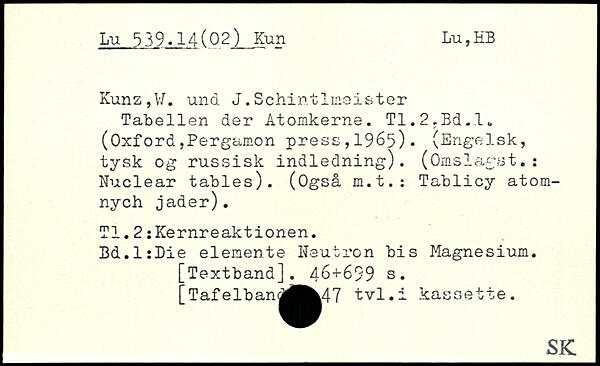Tabellen der Atomkerne. T1.2.Bd.l. (
