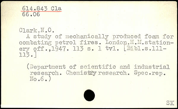 A study of mechanically produced foam for combating petrol fires. London,H.LI.station-ery off.,1947.