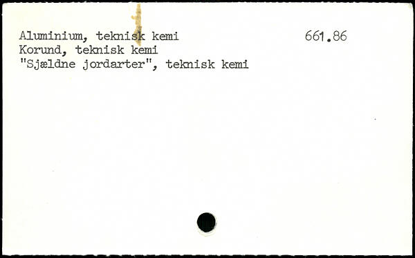Aluminium, teknisk kemi 661.86 Korund, teknisk kemi "Sjældne jordarter", teknisk kemi