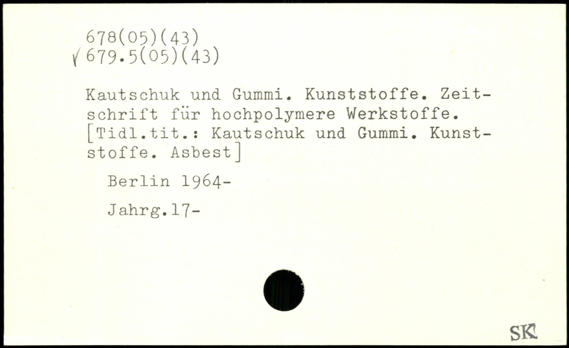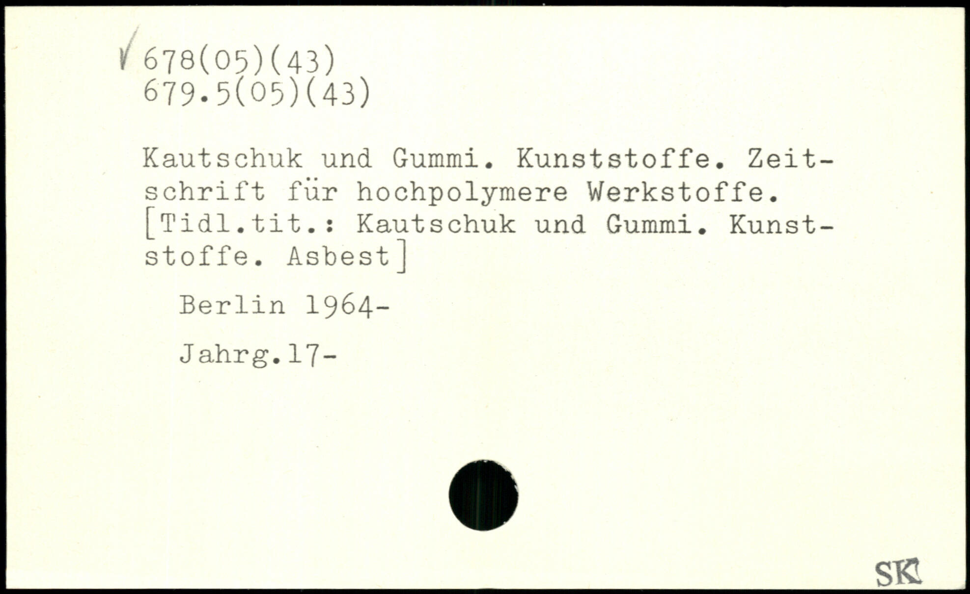 Kautschuk und Gummi. Kunststoffe. Zeitschrift für hochpolymere Werkstoffe. [Tidl.tit.: Kautschuk und Gummi. Kunststoffe. Asbest]
