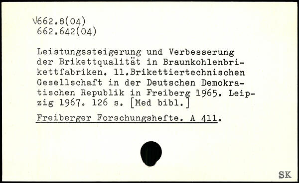 Leistungssteigerung und Verbesserung der Brikettqualität in Braunkohlenbri-kettfabriken. 11.Brikettiertechnischen Gesellschaft in der Deutschen Demokratischen Republik in Freiberg 1965