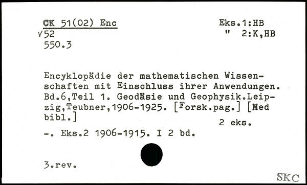 Encyklopädie der mathematischen Wissenschaften mit Einschluss ihrer Anwendungen.