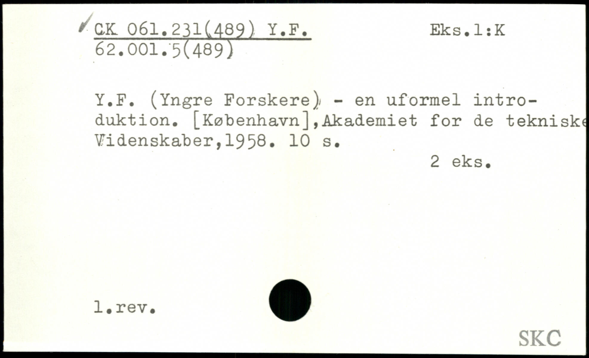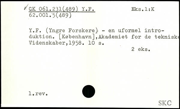 Y.F. (Yngre Forskere) - en uformel introduktion. [København]