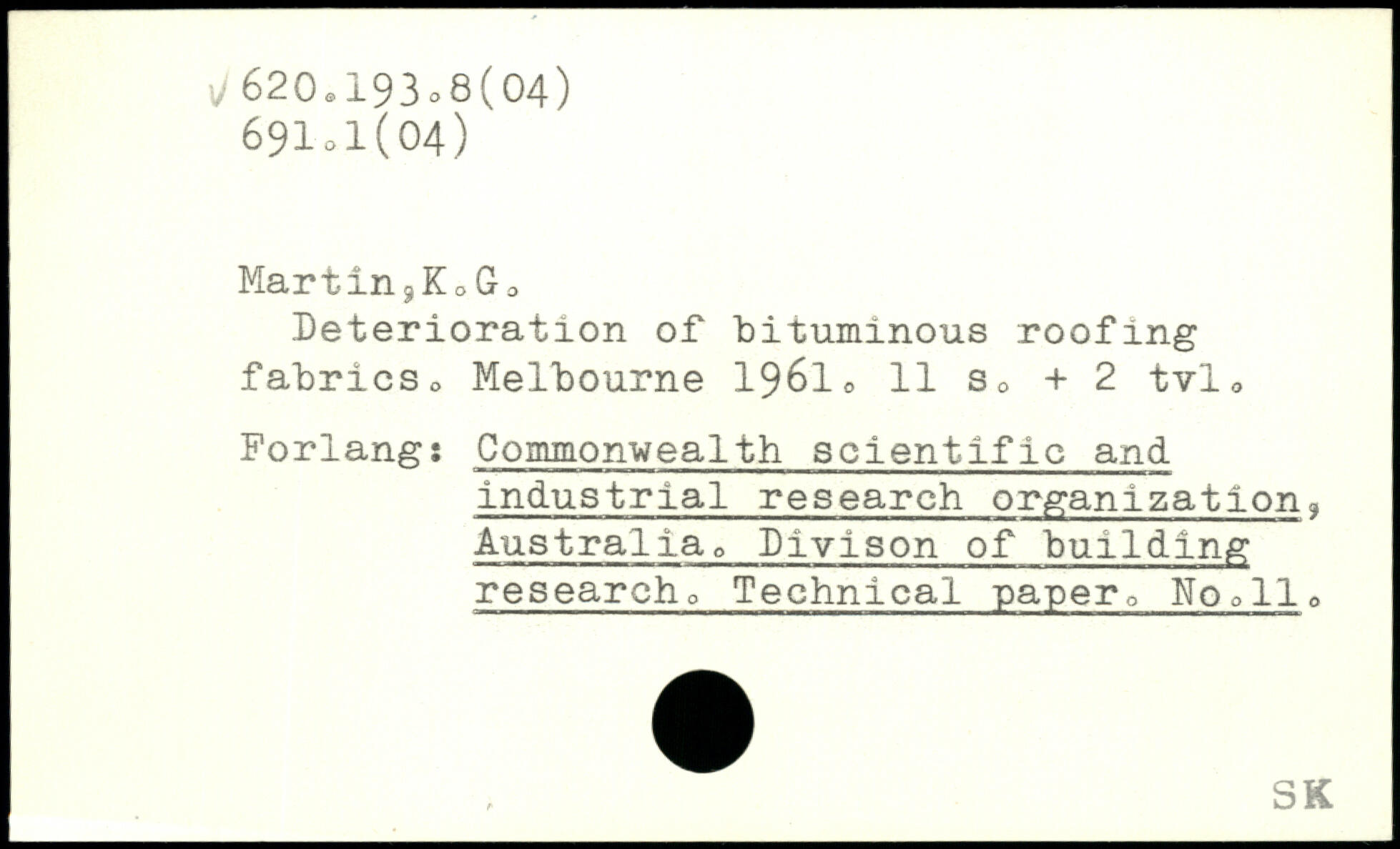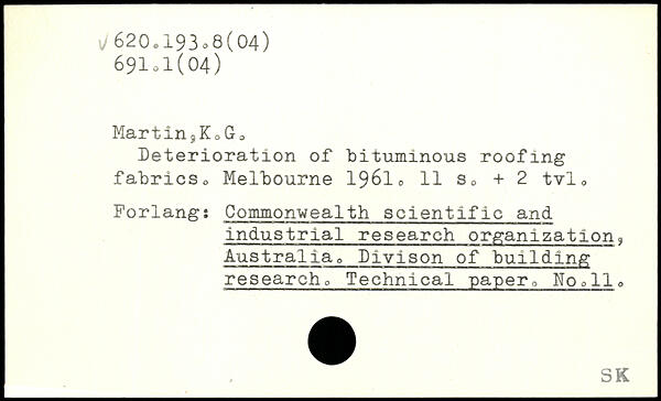 Deterioration of bituminous roofing fabrics. Melbourne 19610