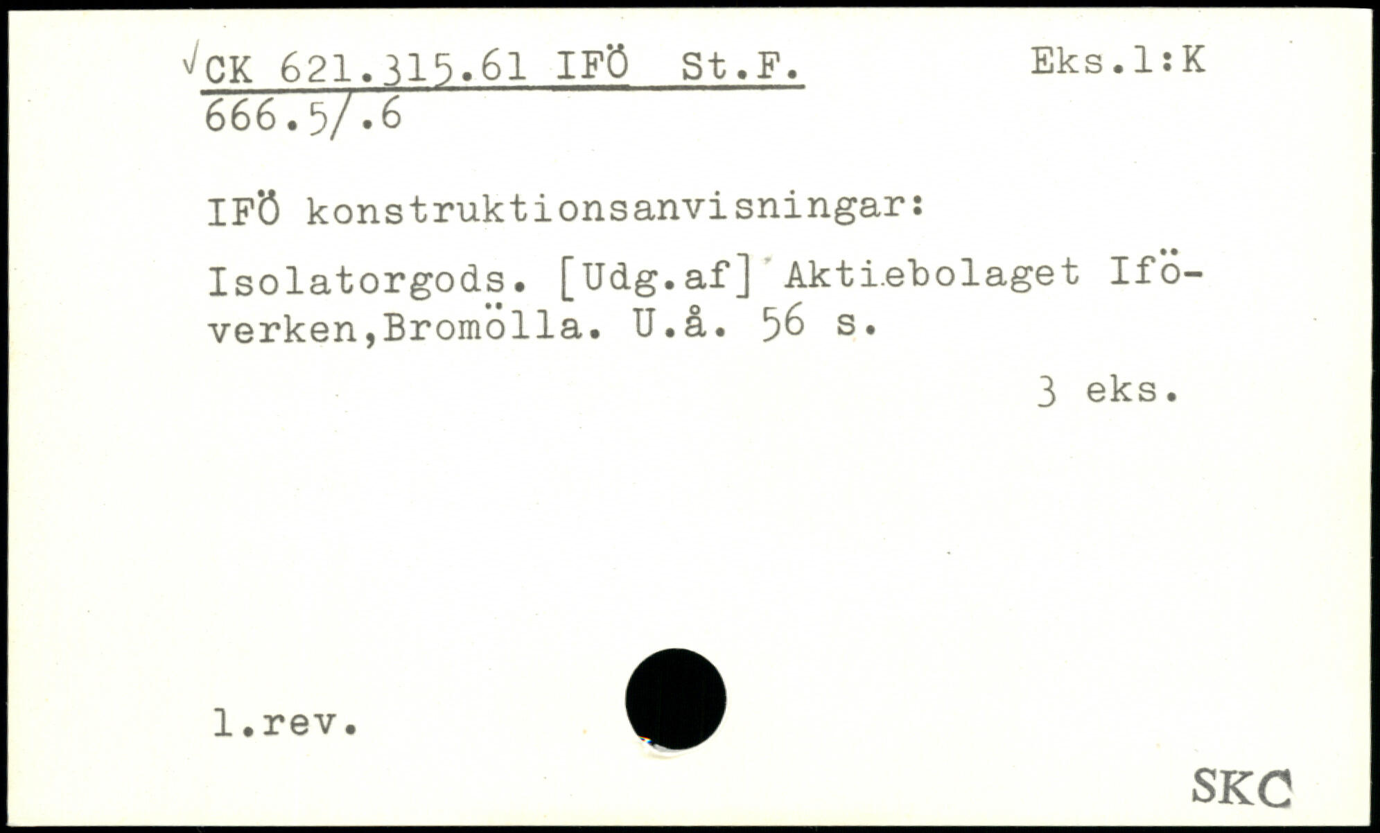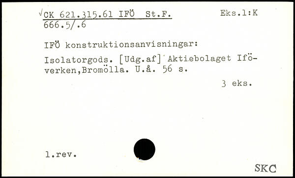 IFÖ konstruktionsanvisningar: Isolatorgods. [Udg.af] Aktiebolaget Ifö-verken,Bromolla. U.å. ^>